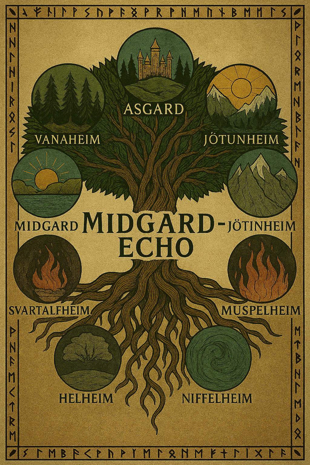 In der nordischen Mythologie ist Yggdrasil, die Weltenesche, das Zentrum des Universums. Ihre Äste und Wurzeln verbinden neun verschiedene Reiche, die von Göttern, Menschen, Riesen, Elfen und anderen Wesen bewohnt werden. Diese Welten sind nicht geografisch, sondern spirituell und symbolisch – sie spiegeln die Ordnung, das Chaos und die Vielfalt des Daseins wider.